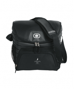 600D poly/420D diamond Dobby/PEVA lining. Adjustable, padded shoulder strap. Front zippered pocket. Dual side beverage/accessory holsters. Zippered, insulated main compartment holds 18-24 twelve Oz. cans. Capacity: 1,200 cubic in./19.6L Weight: 1.05 lbs./0.48kg. 11" H x 11.5" W x 8.5" H.