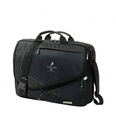 Fits most 17" laptops. Organizer panel with pen loops, padded external hard drive pocket. ID card pocket. Front zippered pocket for small items. Hidden magazine compartment. Pullman handle attachment sleeve. Laptop sleeve: 12.75"x16"x1.25". Fits most 17" laptops. 17" W x 14" H x 4" D.